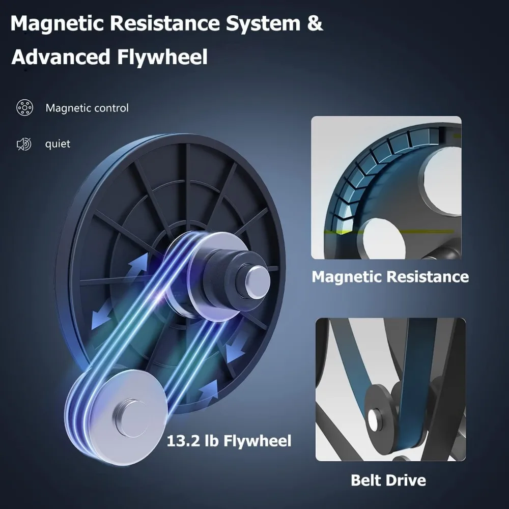 - 8-level Resistance System and Hyper-Quiet Magnetic Drive System: You can customize your indoor fitness program through the 8-level adjustable magnetic tension control system. We have passed the exercise test of novices and professionals, the resistance system can achieve easier or more challenging exercises. Magnetic workout bike is often quieter than other types of resistance. This makes it ideal for use in shared living spaces like office or apartments. No disturbing on working, watching TV, and sleeping
